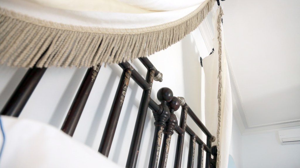 Regale col suo letto a baldacchino e il salottino posto tra il camino e il grande balcone a 100m sul mare.
